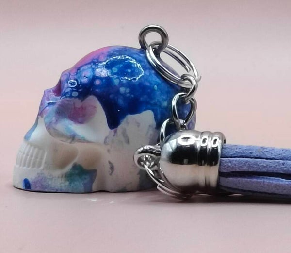 Eco Resin, cell painted mini skull keyring with light purple tassel. Sealed with clear gloss finish.