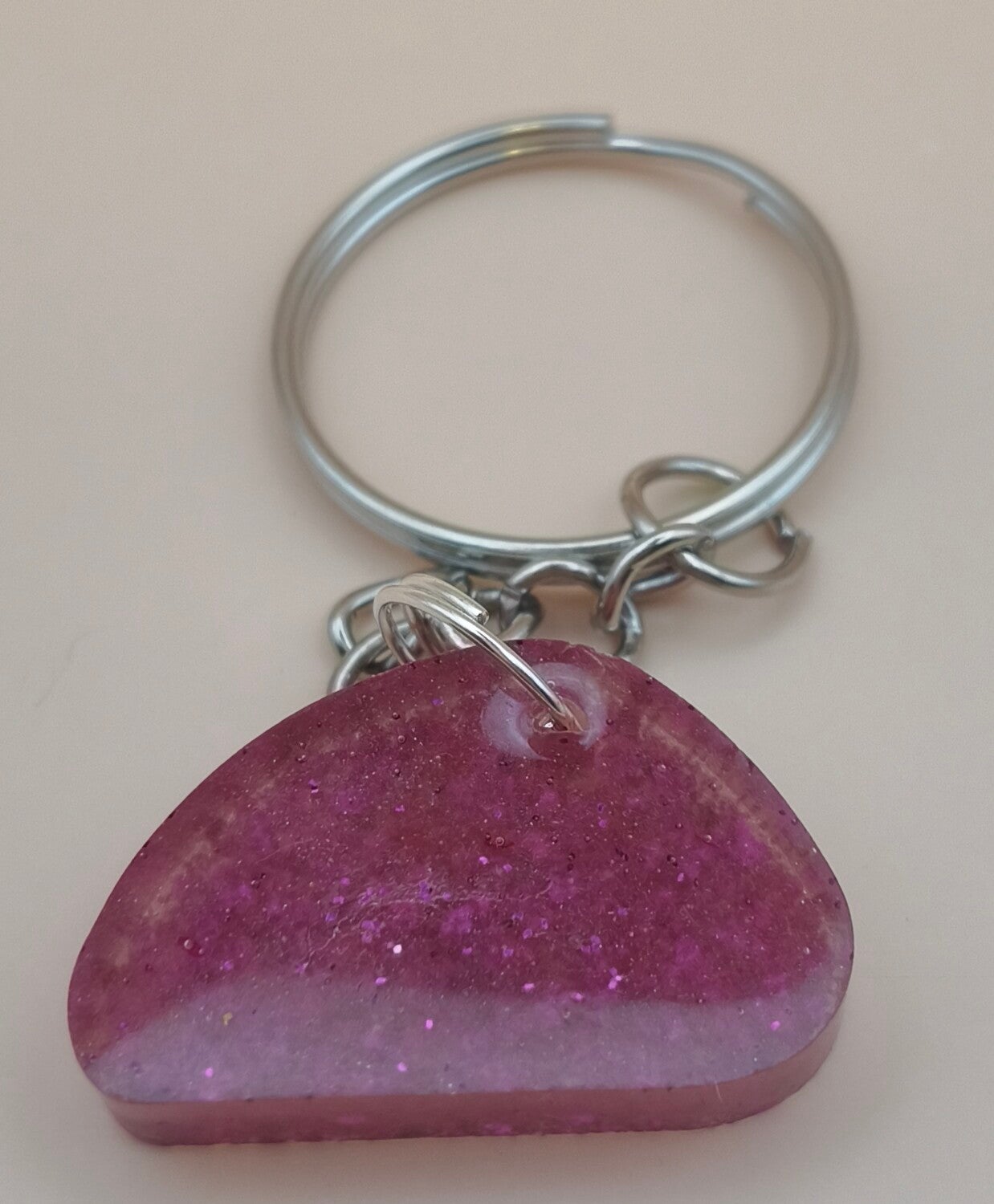 Epoxy resin, small odd shaped pink glitter keyring