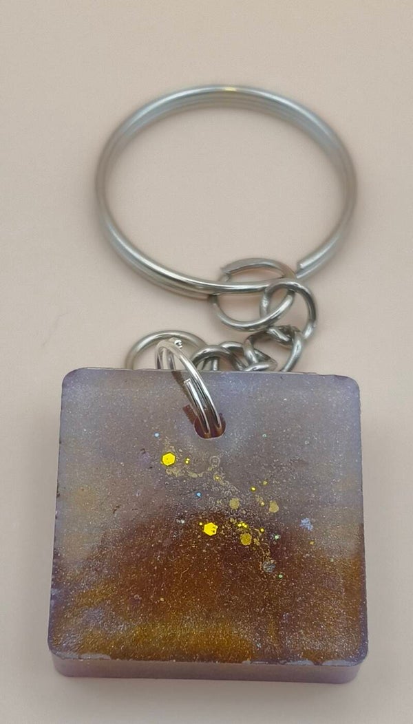Epoxy resin, square purple and gold keyring
