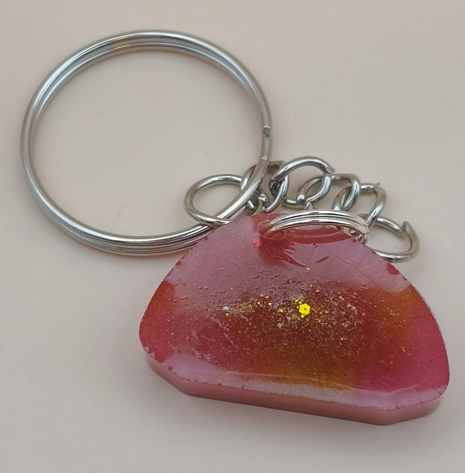 Epoxy resin, small odd Shae red and gold keyring