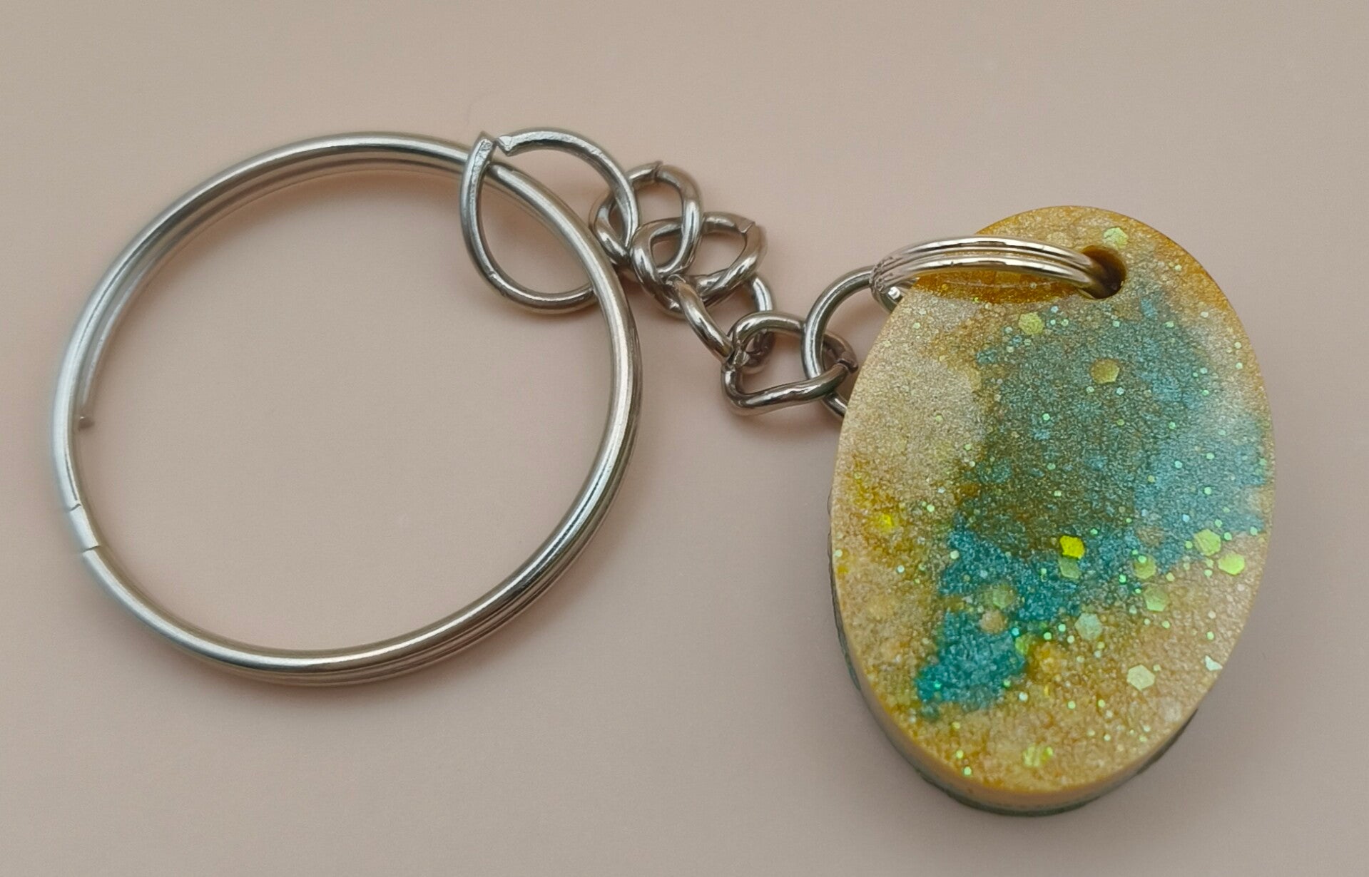 Epoxy resin, oval yellow and green keyring