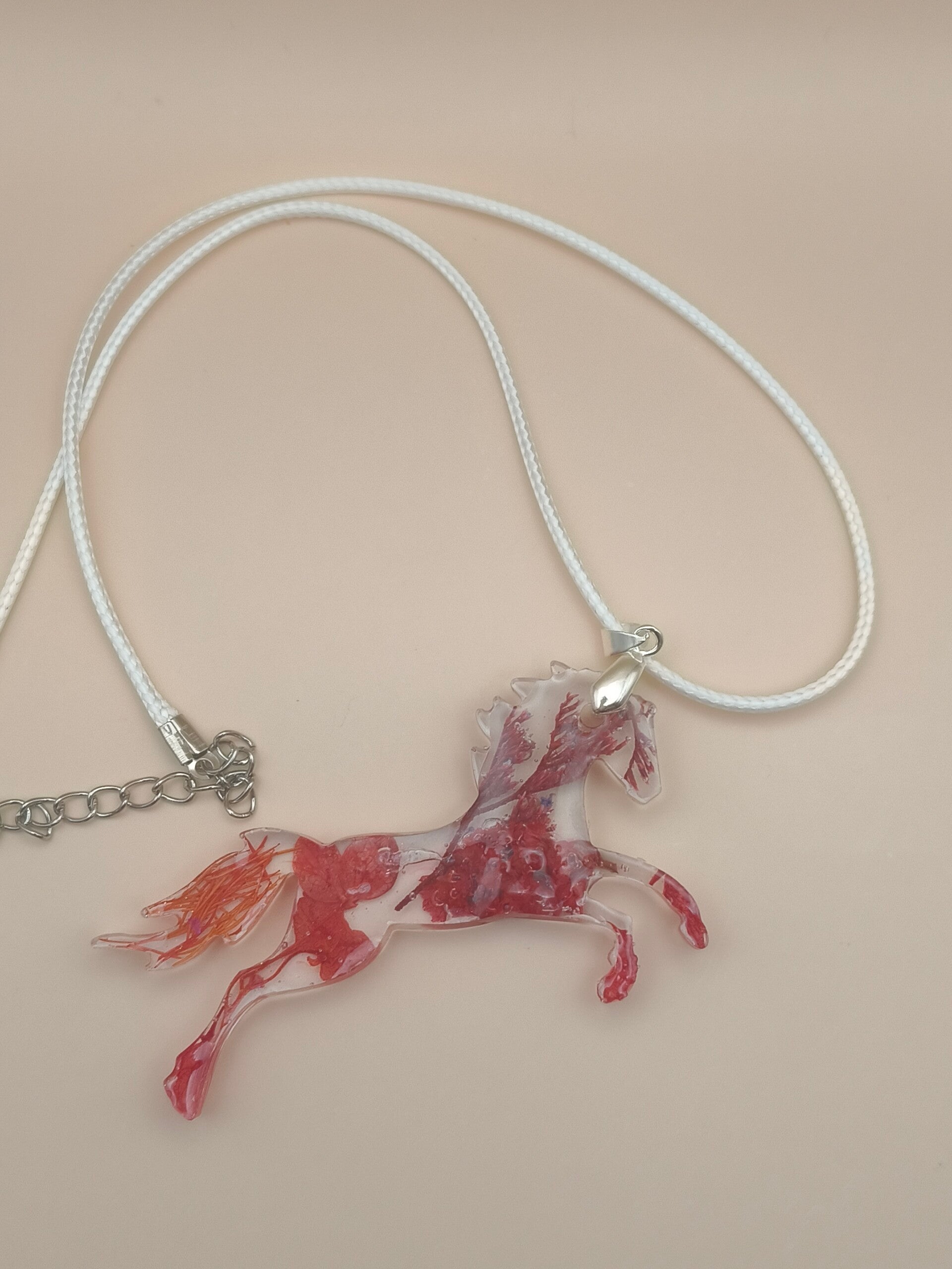 UV resin red flower horse necklace